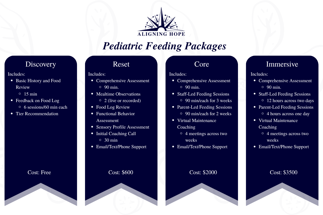 - Individual sessions, parent sessions, and intensive feeding treatment options are currently available.